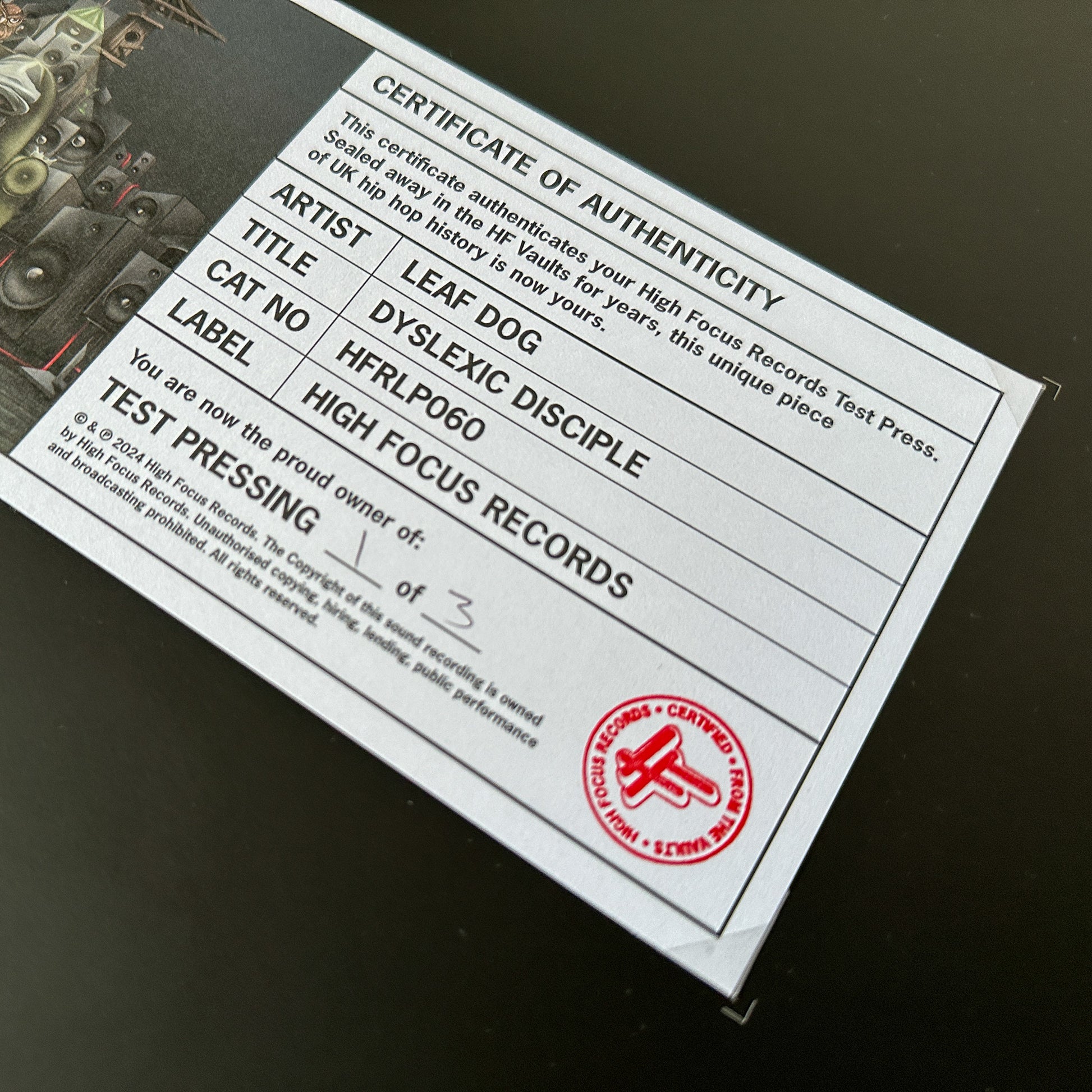 Original Test Press of HFRLP060 - Leaf Dog 'Dyslexic Disciple' (1 of 3) Originally Released 14/04/2017.