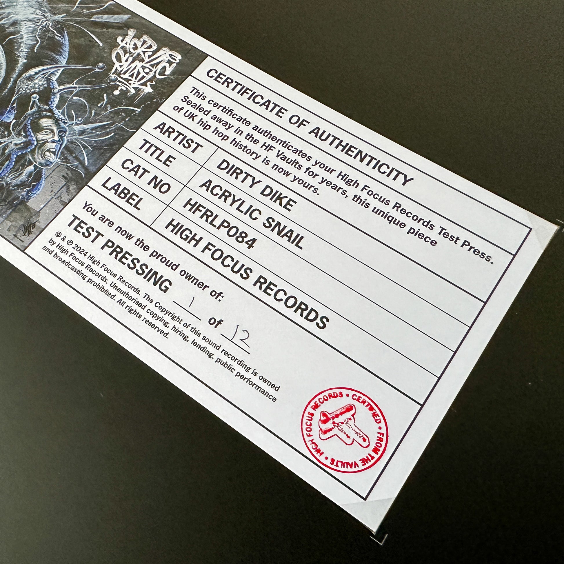 Original Test Press of HFRLP084 - Dirty Dike 'Acrylic Snail (1 of 12) Originally Released 14/12/2018.