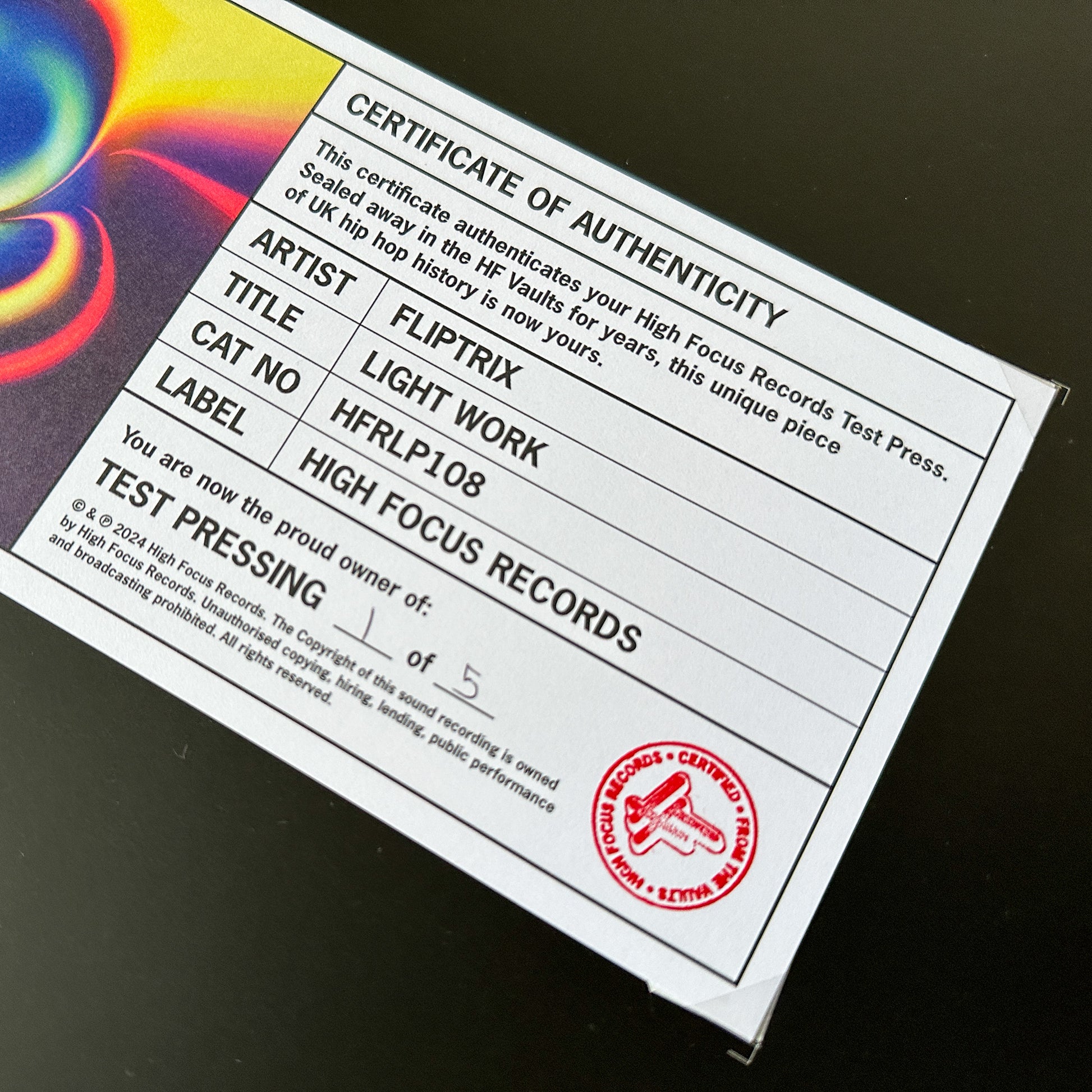Original Test Press of HFRLP108 - Fliptrix 'Light Work' (1 of 5) Originally Released 15/10/2020.