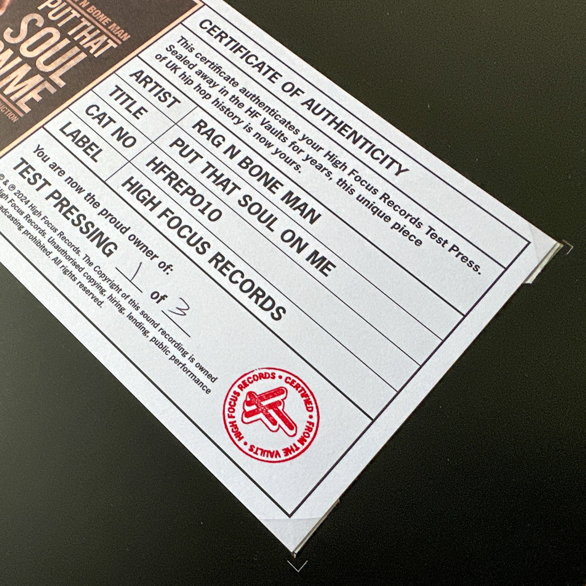 Original Test Press of HFREP010 - Rag'n'Bone Man 'Put That Soul On Me' (1 OF 3) Originally Released 08/07/2014.