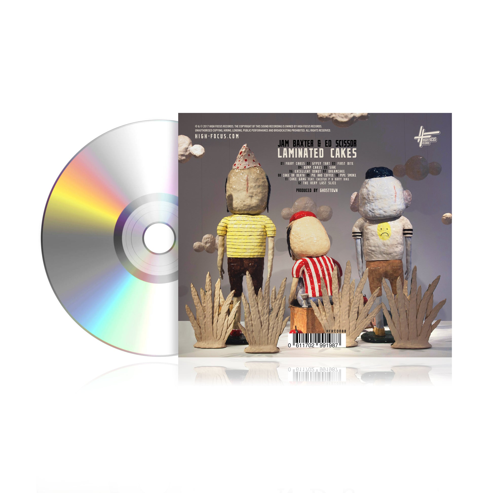 High Focus Records is proud to present 'Laminated Cakes' - A brand new LP from Jam Baxter & Ed Scissor, produced in its entirety by the formidable GhostTown. Shaped over the last five years and with features from Chester P & Dirty Dike, this flash release does not disappoint.