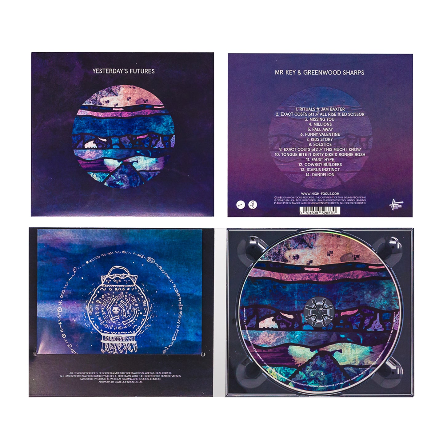 High Focus Records is proud to present 'Yesterday's Futures', the highly anticipated debut album from Mr Key & Greenwood Sharps. The album features Jam Baxter, Edward Scissortongue, Dirty Dike & Ronnie Bosh. The CD comes shrink wrapped in a digi pack with a full colour 16 page booklet with an original piece of artwork made for every track on the album. Artwork by the talented Jamie Johnson.