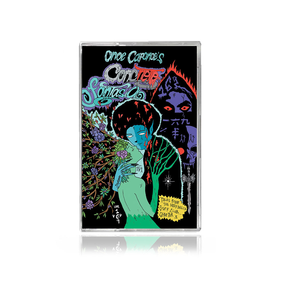 Pinocchio ducking feds in the hood, an Ice King ruling over a frostbitten kingdom, The Cheshire Cat trying to clean up Alice’s act, sweet serenades to off-shore mermaids, the trials and tribulations of life in a haunted trap house, big booty witches, flying carpets and beyond, ‘Concrete Fantasia’ is a real trip through the imaginative mind of Onoe Caponoe.