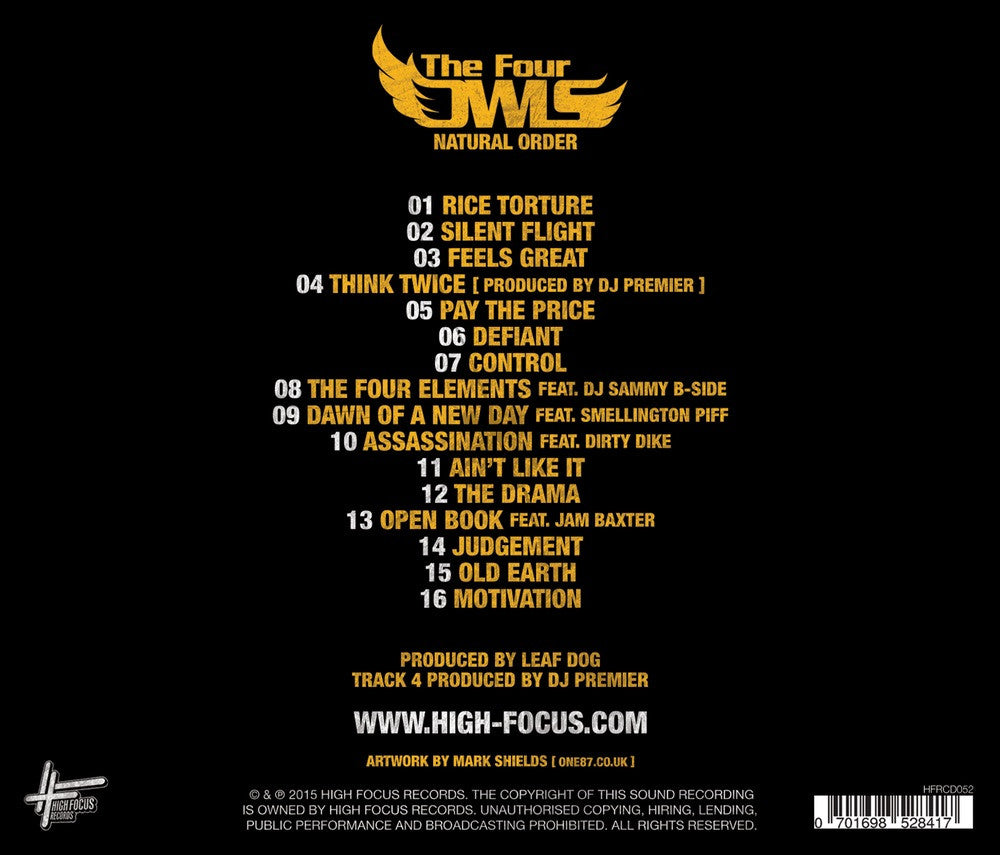 'Natural Order' is the highly anticipated second album from supergroup The Four Owls (Leaf Dog, Fliptrix, BVA & Verb T) entirely produced by Leaf Dog featuring guest production from the legendary DJ PREMIER. This certified classic 16 track album features Dirty Dike, Jam Baxter and Smellington Piff.