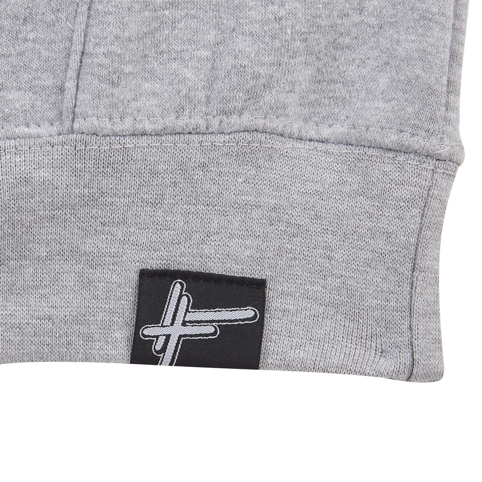 Woven HF logo trimming on bottom right of hoodie